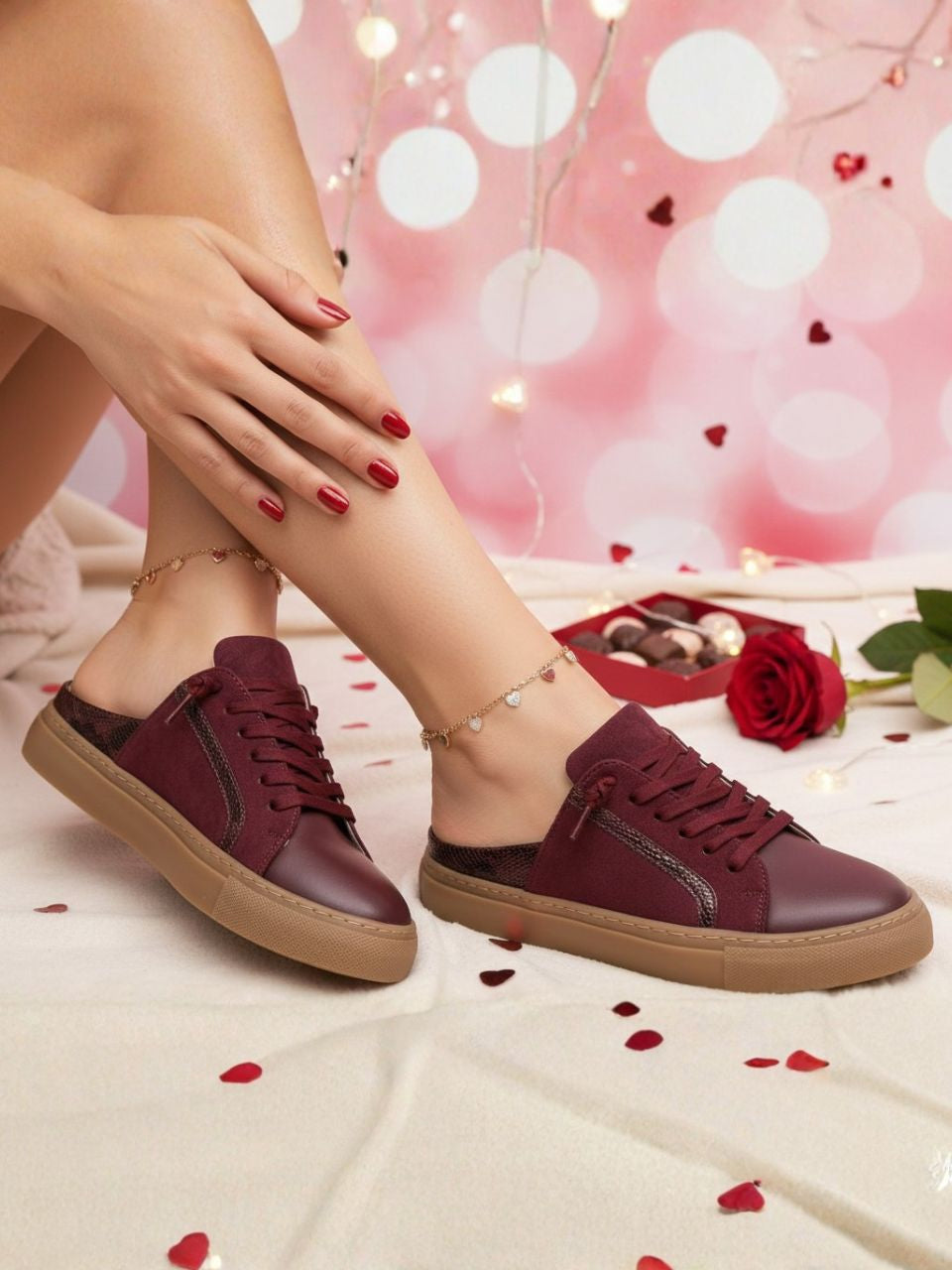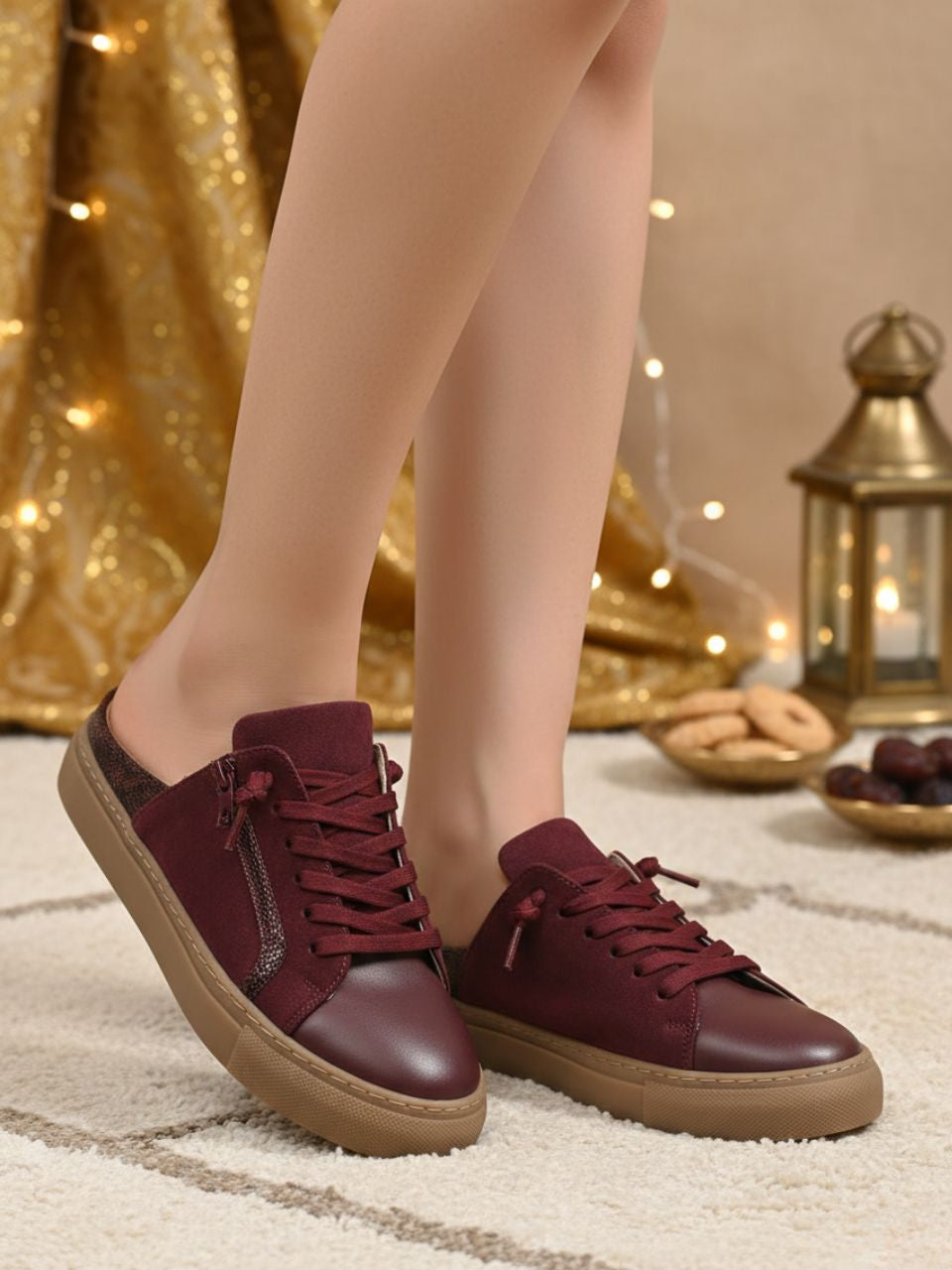 Nicola Maroon Flat Sneakers
